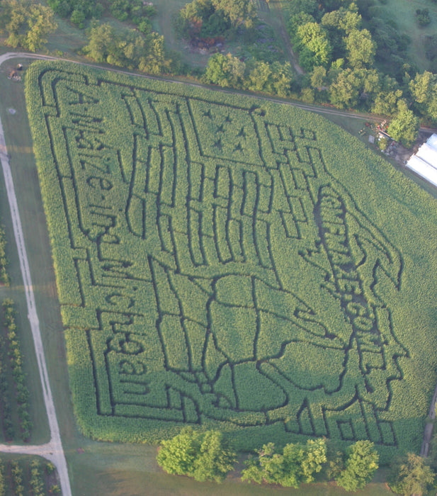 If you’re not sure about the big six-acre maze, try out our mini-maze. With minimal twists and turns, this is a great option for the little ones to “get lost” with mom or dad. With one entrance/exit, it’s a fun option to not get lost but sill enjoy the corn maze experience.